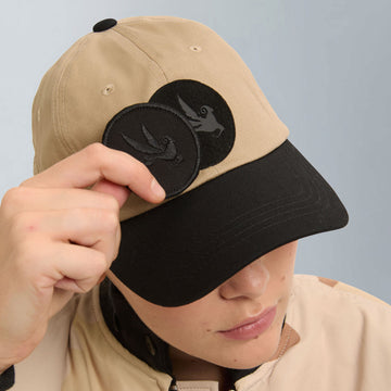 • Two-tone design: black crown with beige visor and accents
